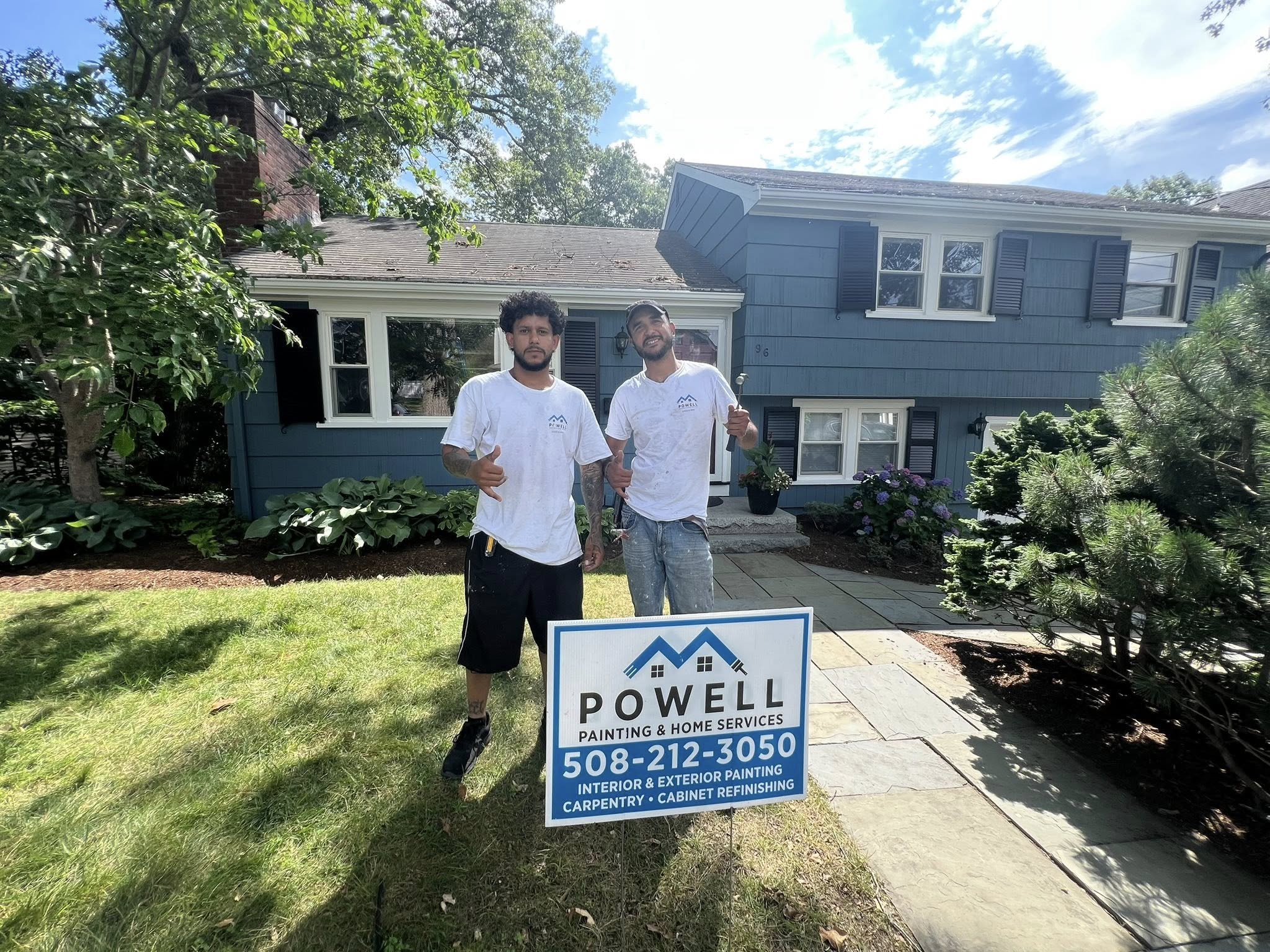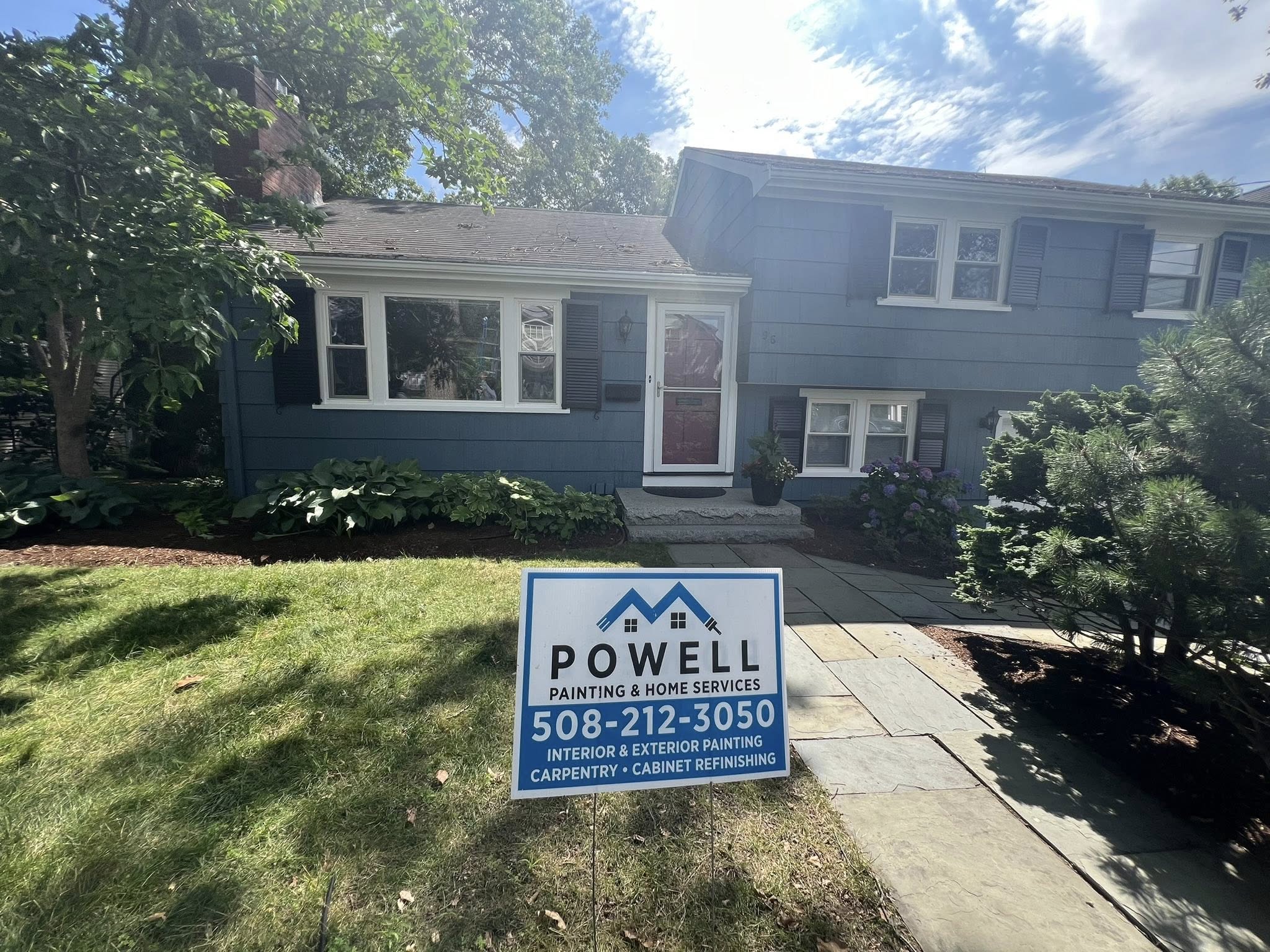 Powell Painting And Home Services just completed a stunning exterior update for a wonderful Needham family, changing their house color to Benjamin Moore’s Thousand Oceans #1645 in a beautiful flat finish. The new look truly enhances their home’s curb appeal!